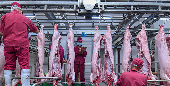 為保證生豬質(zhì)量,公司堅持從源頭抓起,同國內(nèi)多家大型牧業(yè)公司、生豬養(yǎng)殖合作社簽訂了長期戰(zhàn)略合作協(xié)議,生豬合同化供應(yīng)率達(dá)到80%...
